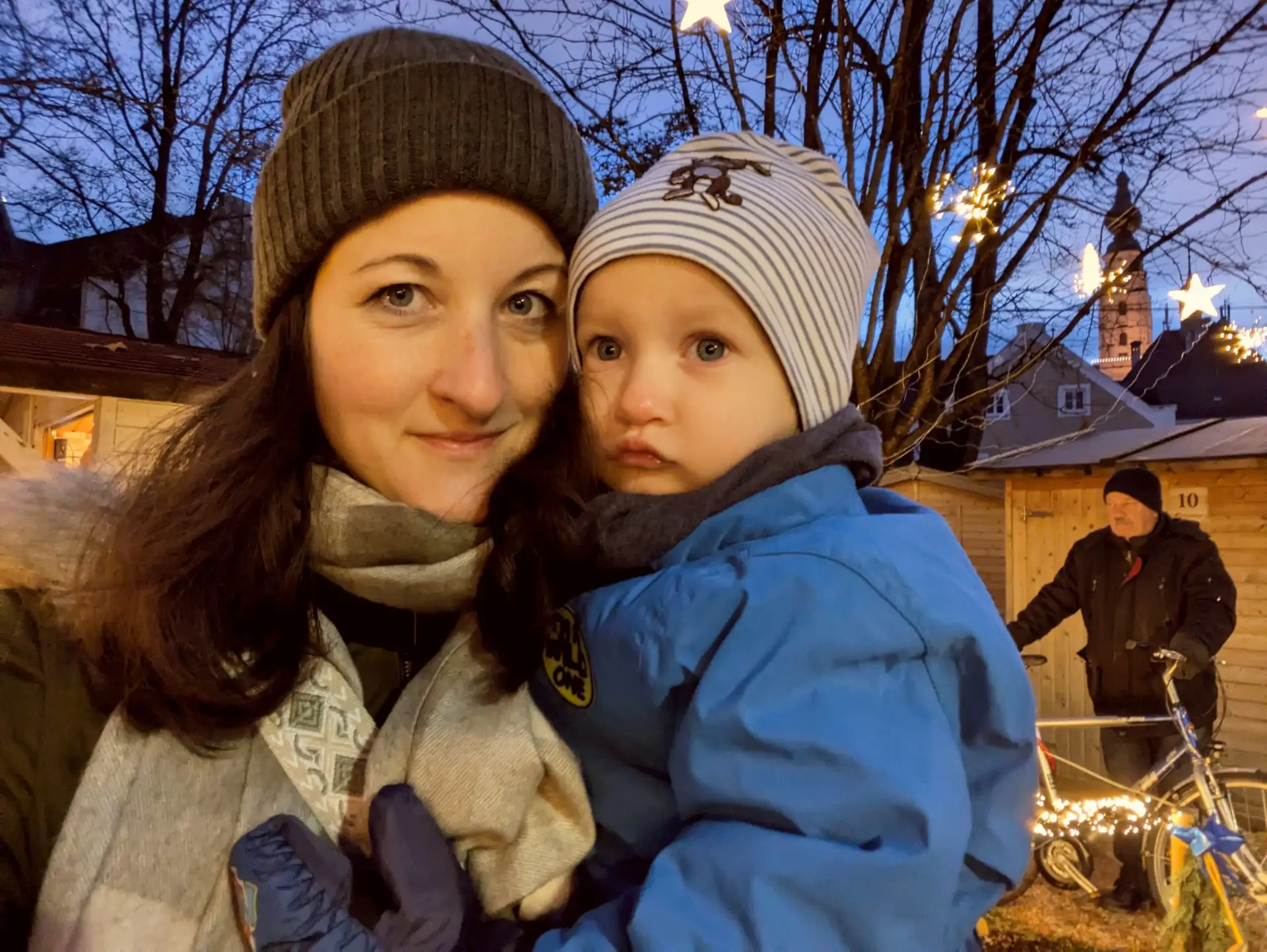 Bei der Sonderverlosung – „SELFIE“ – wurde das Foto von der Familie Peukert (grandioser Biss in den Zimtstern ihrer bezaubernden Tochter) einstimmig ausgewählt. Die Freude über den tollen Gewinn – Samsung Galaxy Z Flip 4, gesponsert von der IN(N) ENERGIE AG – war der Familie, bei der Übergabe durch GF Christian Schantz, ins Gesicht geschrieben.